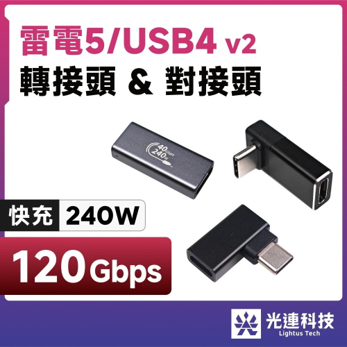 光連科技🪷 USB4 Type-C 轉接頭 40Gbps 雷電 4 Thunderbolt 3 對接頭 正彎 側彎 延長