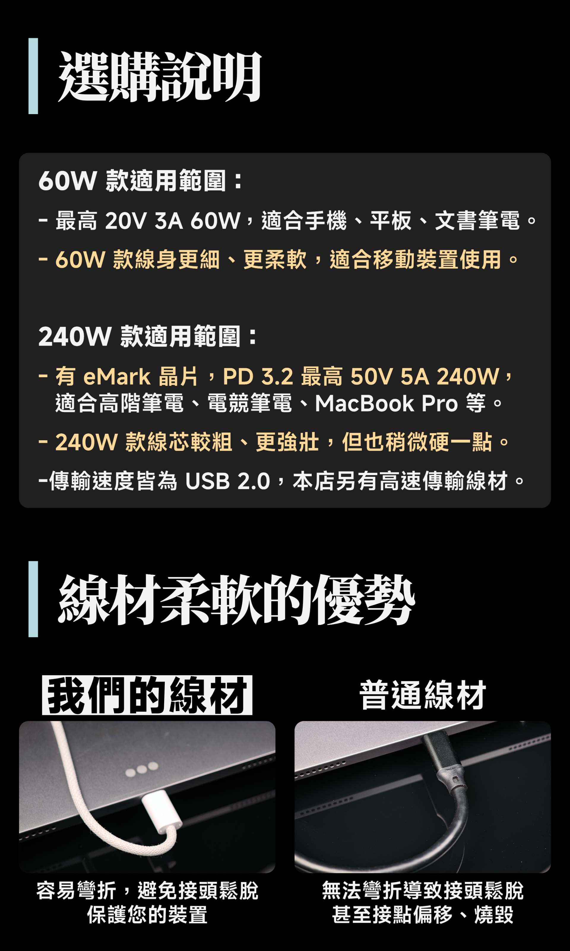 光連科技🪷 超柔軟 Type-C 傳輸線 240W 快充 USB-C PD 3.2 3.1 100W 60W 數據線