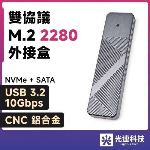 光連科技🪷M.2 2280 SSD 外接盒 全鋁合金 CNC USB 3.2 10Gbps NVMe SATA 雙協議