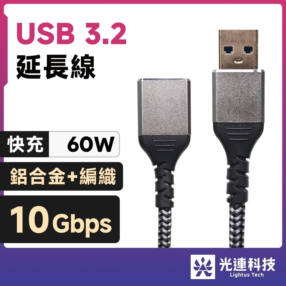 光連科技🪷 USB 3.2|10Gbps 60W 延長線|USB 3.1 Gen 2 Type-A 快充 編織 公母