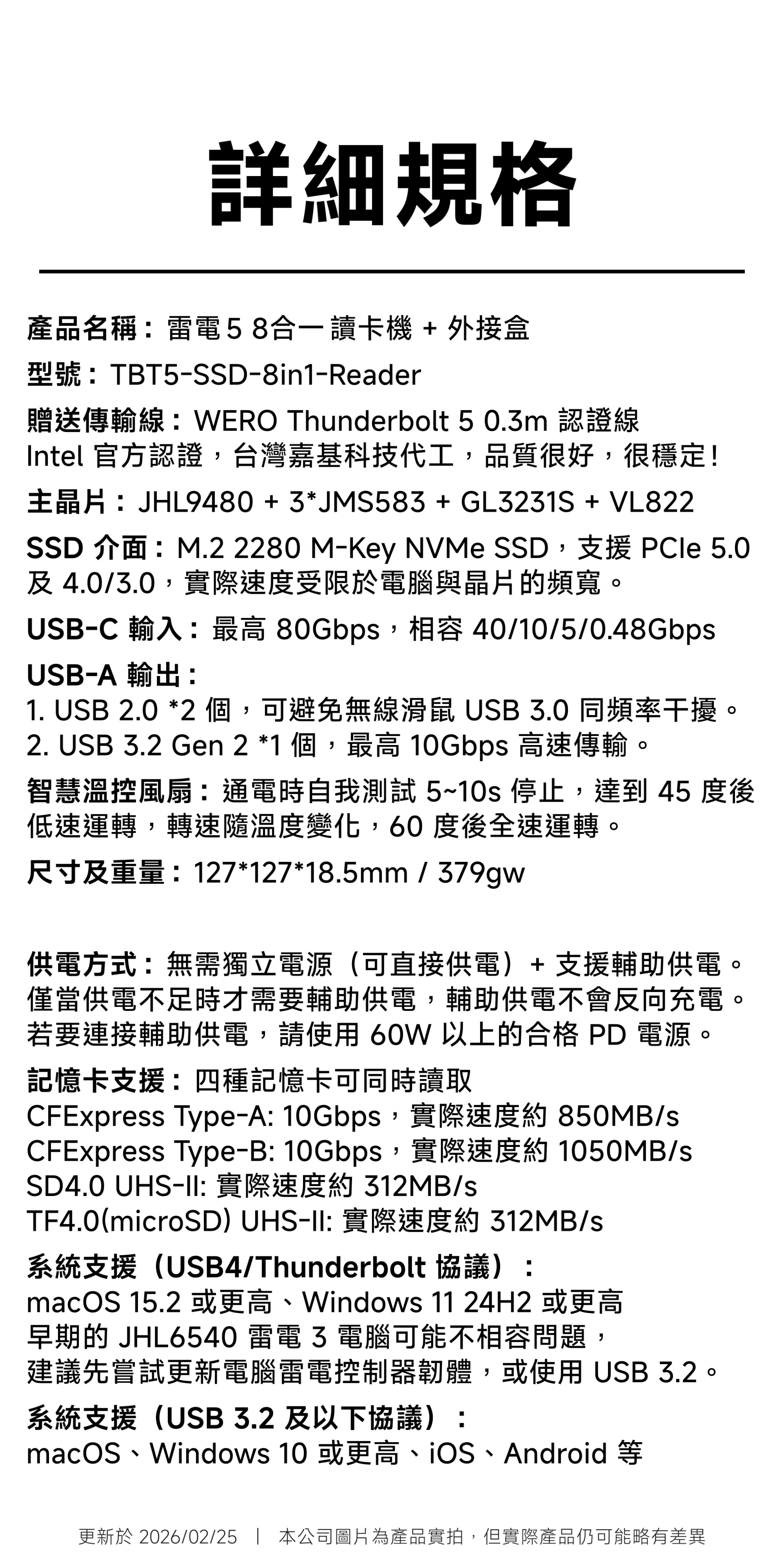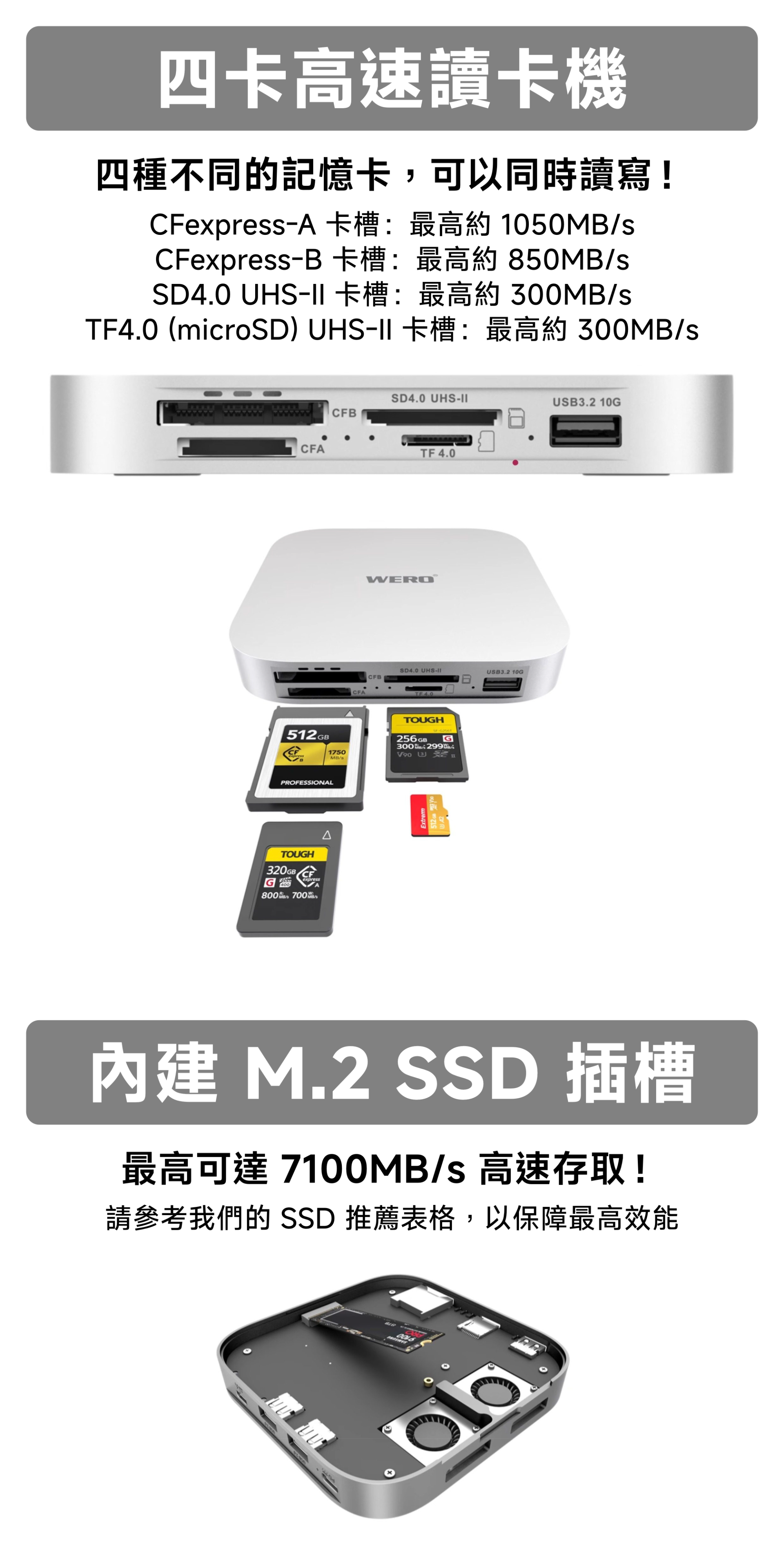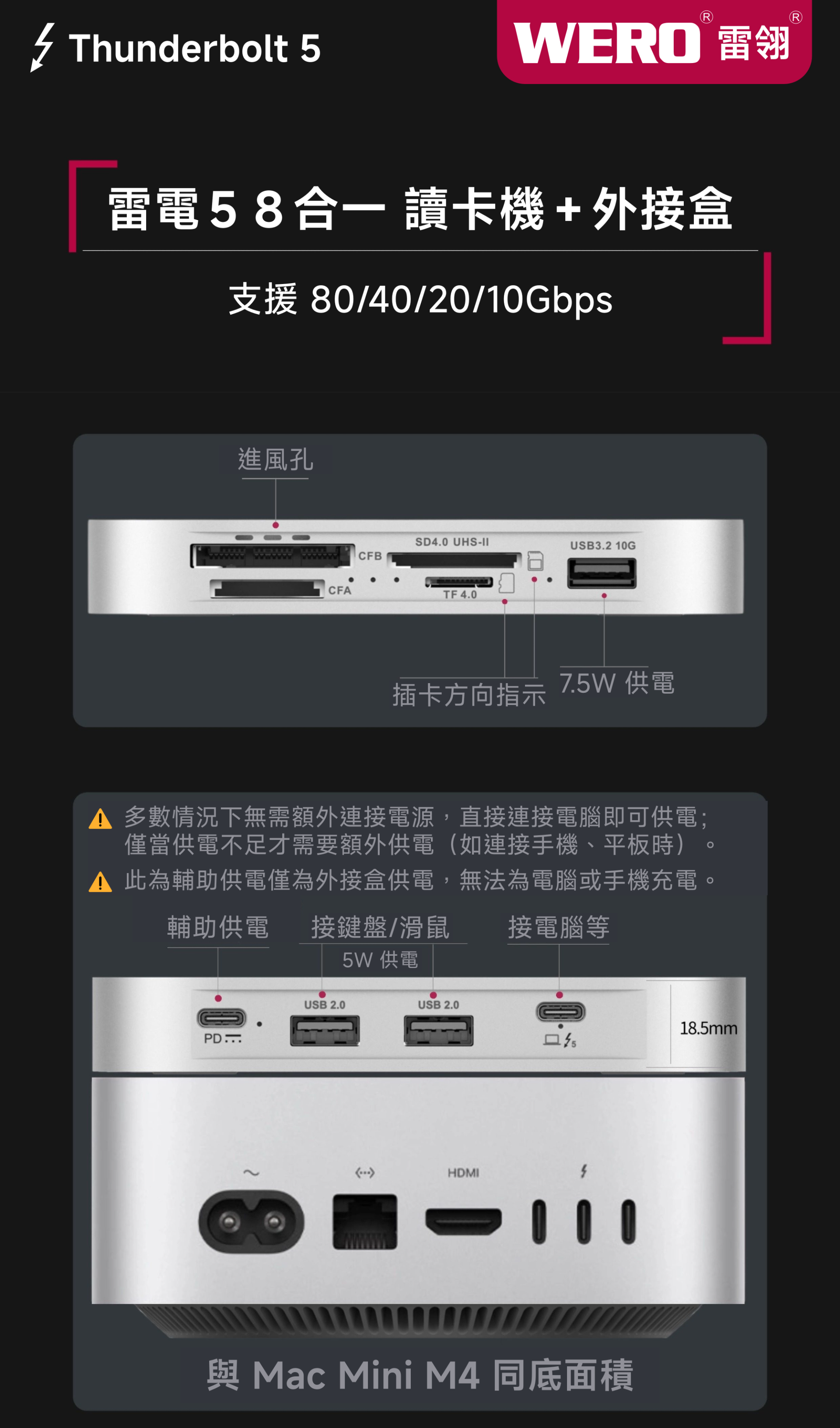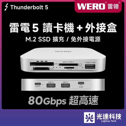 WERO 雷電 5 讀卡機 + SSD 外接盒 Thunderbolt 80Gbps 高速 40Gbps USB4 3