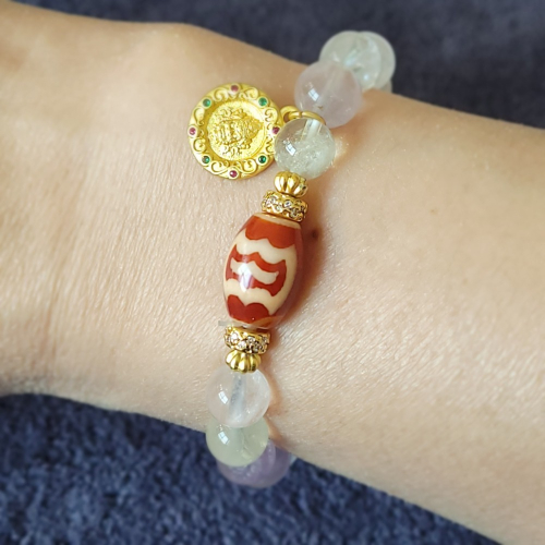 天珠所蘊含的磁場與水晶的療癒能量相輔相成,幫助佩戴者提升免疫力、放鬆心情,同時抵擋負能量的侵擾,為生活注入更多正向力量。