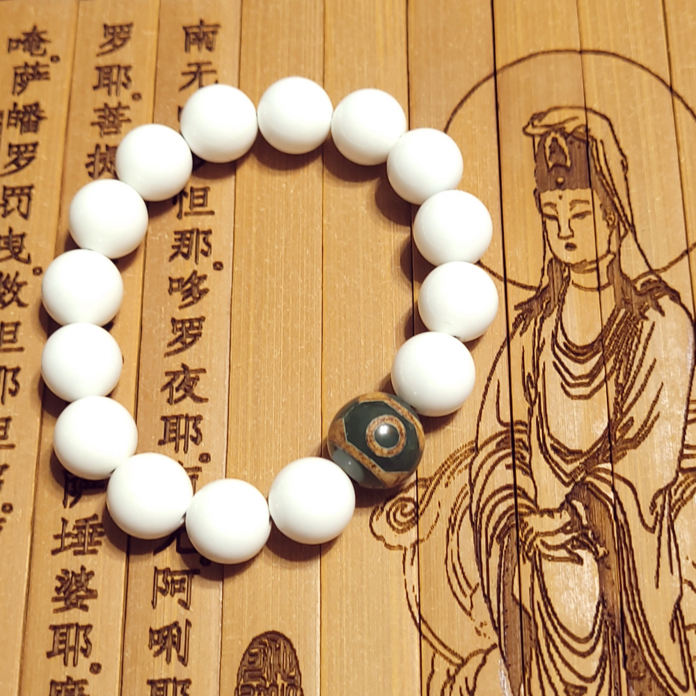這款手串結合綠瑪瑙、三眼天珠與硨磲的靈性能量,每一環節都經過過爐加持,傳遞福報與平安,打造兼具佛教文化內涵與現代美感的靈性飾品。