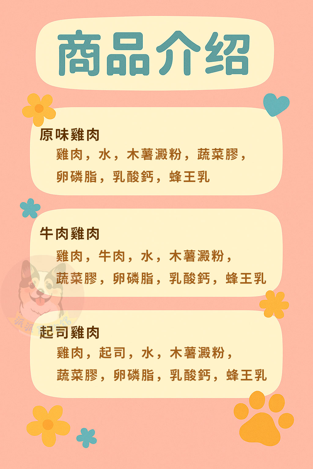 • 原味雞肉 原味雞肉