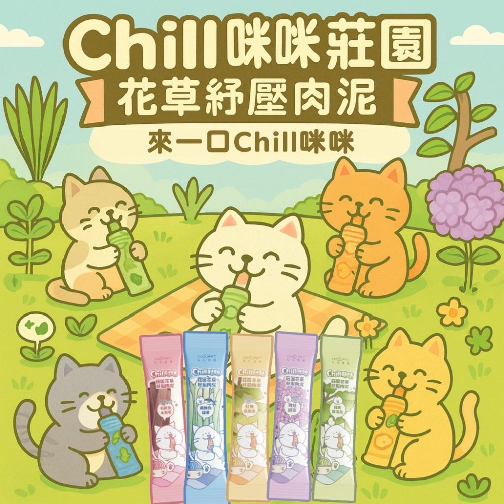 吃一口Chill咪咪~🌼 莊園花草紓壓肉泥 貓肉泥寵物零食貓咪零食貓條貓泥貓咪肉泥肉泥條貓食幼貓零食寵物肉泥貓條肉泥貓泥