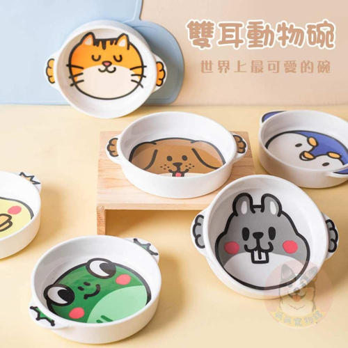 🐸雙耳動物碗🐸 貓碗 寵物碗 貓咪碗 寵物碗架 寵物陶瓷碗 貓碗架 貓咪飼料碗 貓咪碗架 貓用品 護頸碗 寵物碗架 貓