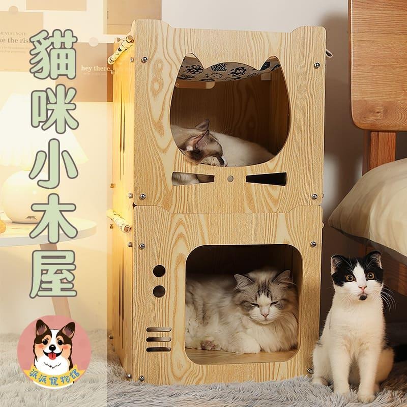 貓咪小木屋🍃 貓窩 貓別墅 木頭貓屋 貓吊床 貓床 寵物窩 貓木屋 貓房 貓屋 寵物床 貓咪窩 木頭貓窩 貓 貓咪床