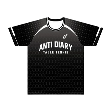 這是台灣桌球Youtuber犬犬的第一代球衣的紀念版本,犬犬是打ANTI膠皮,所以在LOGO設計上以ANTI作為身體,加上柴犬的頭做為犬犬頻道標誌性的LOGO