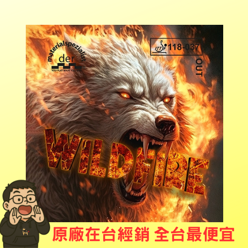 der-materialspezialist Wildfire 野火是創新且非凡的半長顆反旋轉膠皮,結合了半長顆結構與經典anti膠皮的橡膠組合,帶來全新的打球體驗。具備極為平坦且強烈下沉的飛行曲線,並能產生低旋轉或完全無旋轉的阻擋與反擊球。無論防守或進攻,Wildfire 都能輕鬆應對,並且提供優異的控制值。OX 版本帶來更高的控制,強烈的下沉效果讓比賽更加精彩。