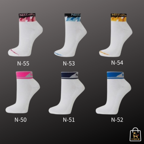 日本桌球品牌 Nittaku 出品的專業運動短襪系列,從 N-50 到 N-55 共六種款式,多色可選。襪口採色塊圖騰設計,展現活力風格。襪身柔軟舒適,採用吸汗快乾材質,適合長時間訓練及比賽穿著。包覆性佳、不易滑落,是桌球與運動愛好者的理想選擇。