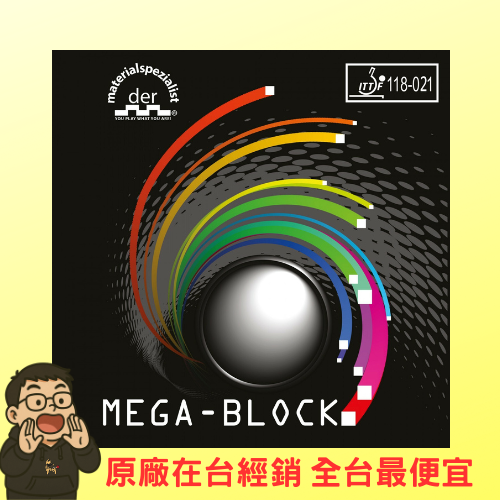 MEGA-BLOCK 是 der-materialspezialist 推出的高效能ANTI膠皮,專為最大化旋轉反轉效果而設計。