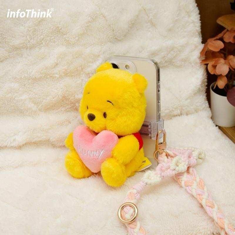 Disney迪士尼 全新正品 infoThink 春季限定 小熊維尼系列 愛心款絨毛公仔手機背夾+手機配件袋 情人節禮物