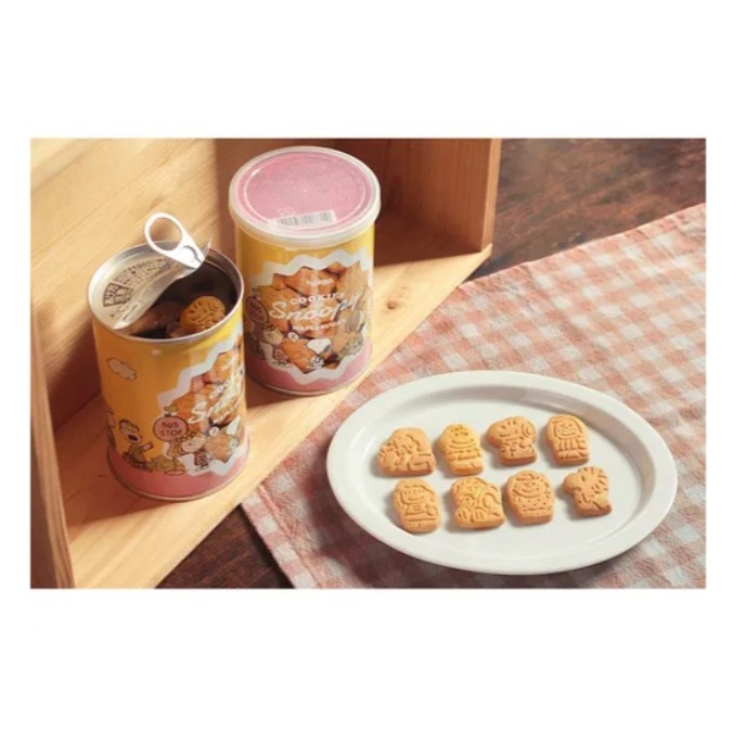 有史努比和peanuts漫畫圖案的可愛圓形罐子,有帶巧克力片的可可餅乾,還有史努比和他的朋友形狀的可愛餅乾。