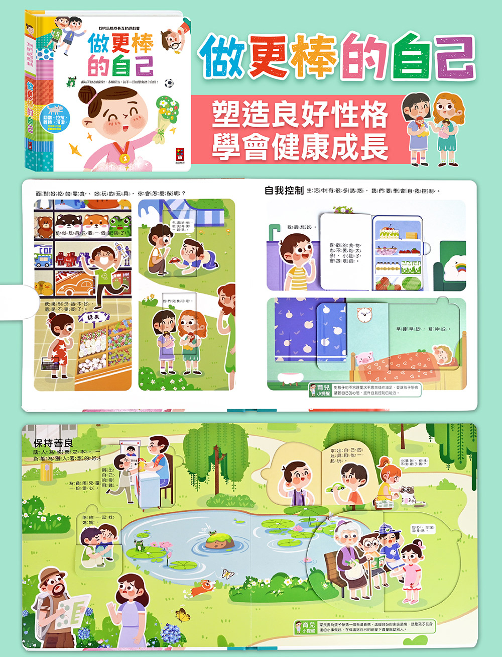 家長可在旁與孩子一起閱讀,一起使用書中各種不同的互動遊戲機關,也可以補充關於面對挫折、壓力、負面情境時應該要怎麼做,學會如何在不同情境下做出正確的應對方式,不僅能促進親子關係,也能讓孩子學會面對挫折、培養自信,快樂成長!