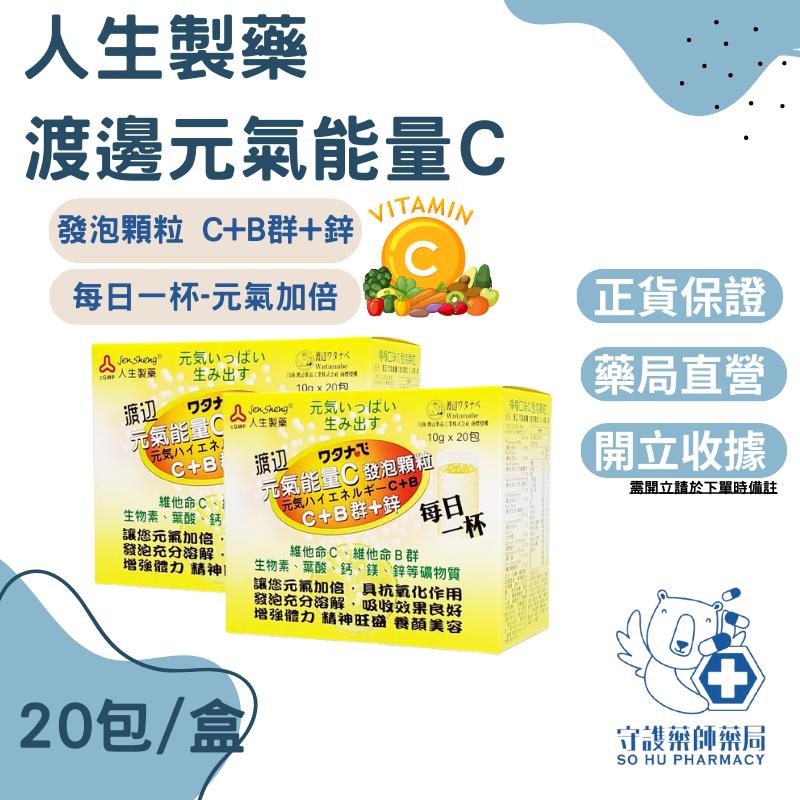 【藥局直營】⭐免運⭐人生製藥 渡邊 元氣能量C 發泡顆粒 C+B群+鋅 20包/盒 元氣發泡C 維生素B