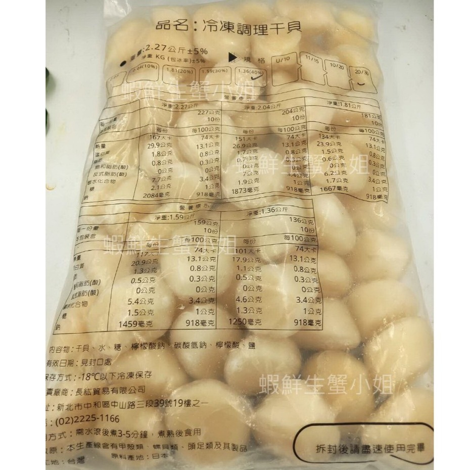 【生凍帶子20/30 (干貝)】(221041323)