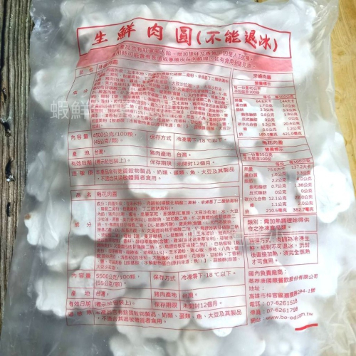 重量:肉圓55g/粒(100粒/包),總重5500克
