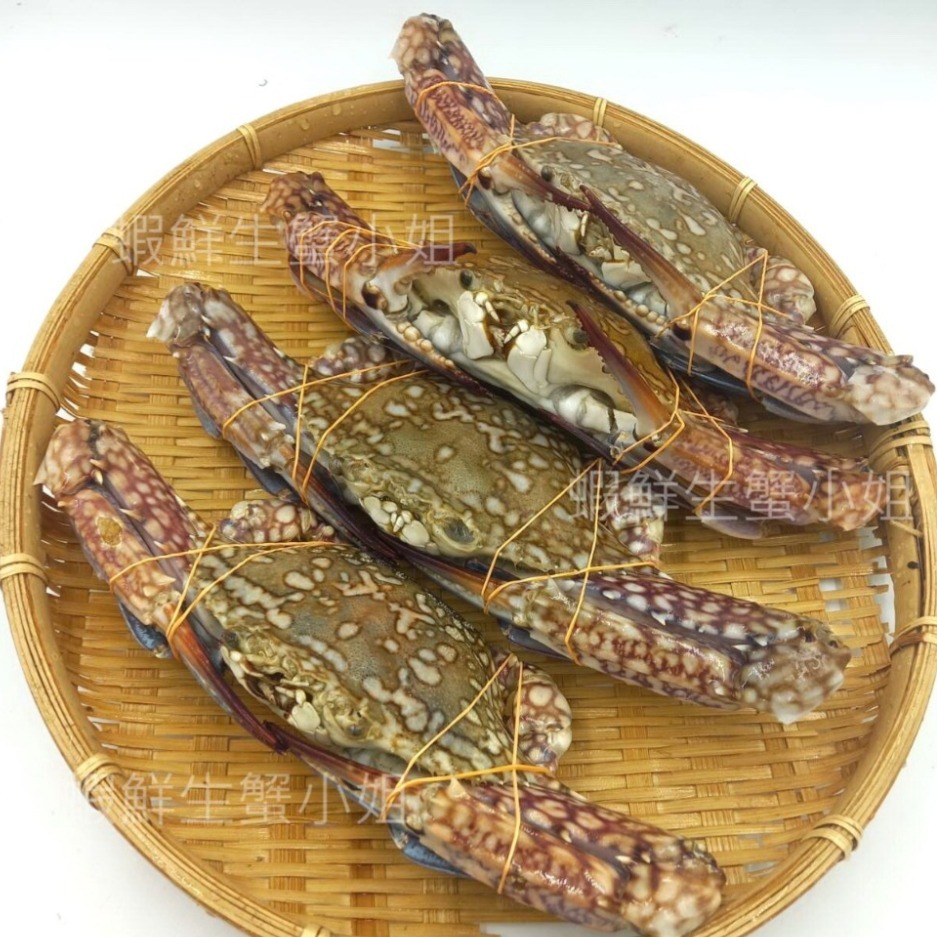 產品說明: 成份:藍花蟹 -公 產地:斯里蘭卡 重量:約1000克+-5%(4隻)/包 規格:250克上/隻 保存方式:冷凍 保存期限:依產品標示 ---------------------------------------------------------------------------