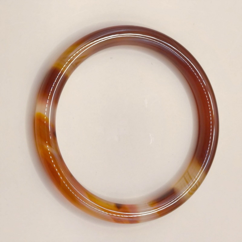 此款為天然瑪瑙手環,整體呈現溫潤的紅褐色調,帶有自然形成的深淺漸層與紋理,每一處色帶皆為天然生成,非人工染色。