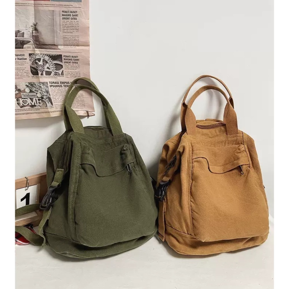 (現貨綠色×1+預購)外貿純色複古帆佈雙肩包女日系簡約大容量初高中生書包大學生背_冠宇百貨屋