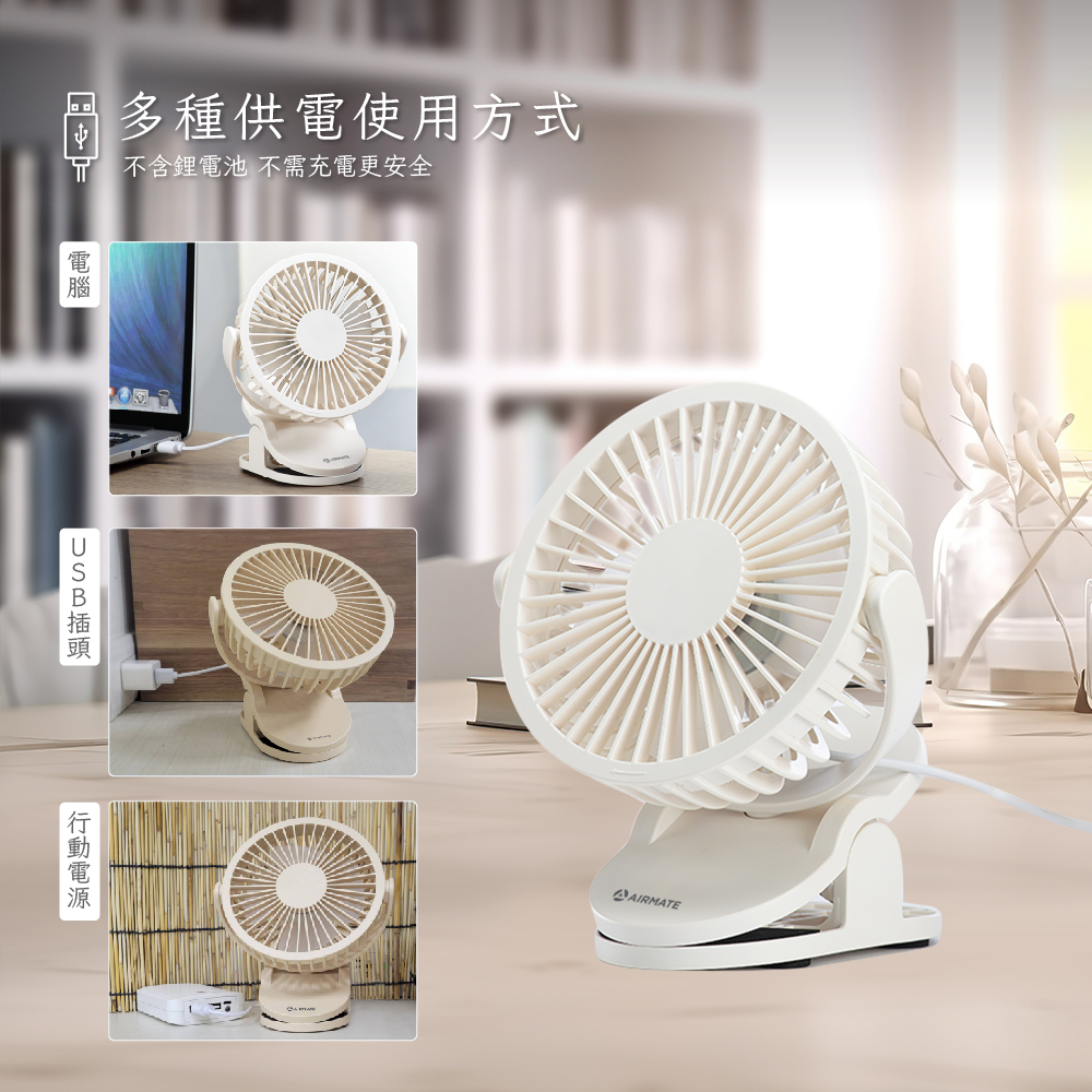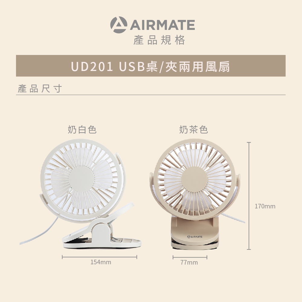 【7-ELEVEN門市團購】Airmate艾美特 USB桌/夾兩用小扇 (無鋰電池非充電式) UD201 (2入組)