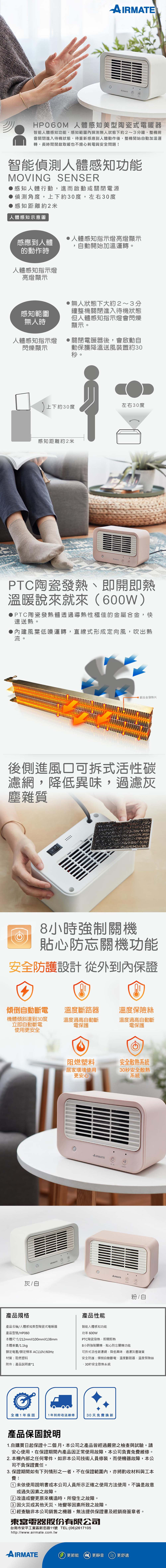 Airmate艾美特 人體感知美型陶瓷式電暖器 HP060M