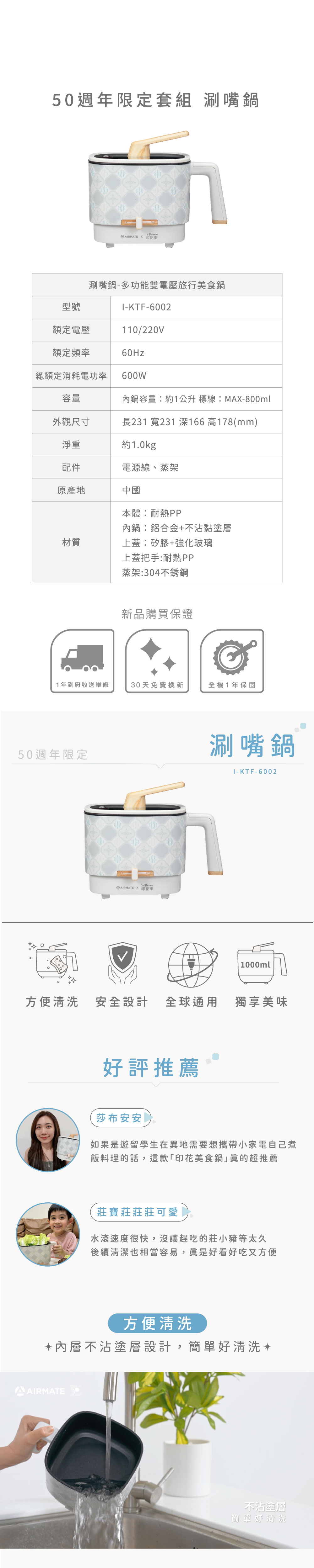 【7-11門市團購】Airmate艾美特 50周年限定個人美食鍋-涮嘴鍋 I-KTF-6002