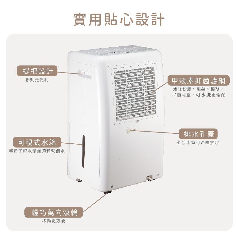 除濕能力:12.0 L/d (標準試驗環境27℃ 60%RH )