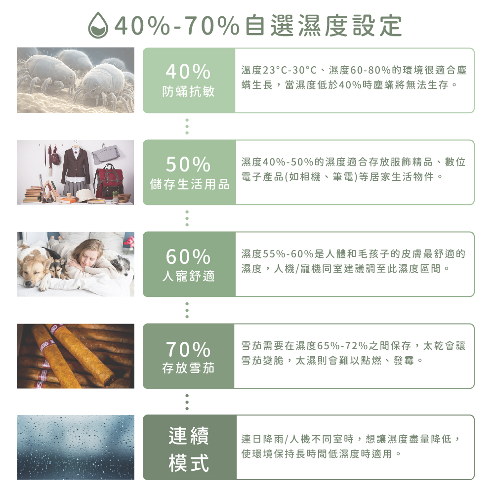 3. 智能調節三種模式:連續除濕/濕度設定/智慧乾衣
