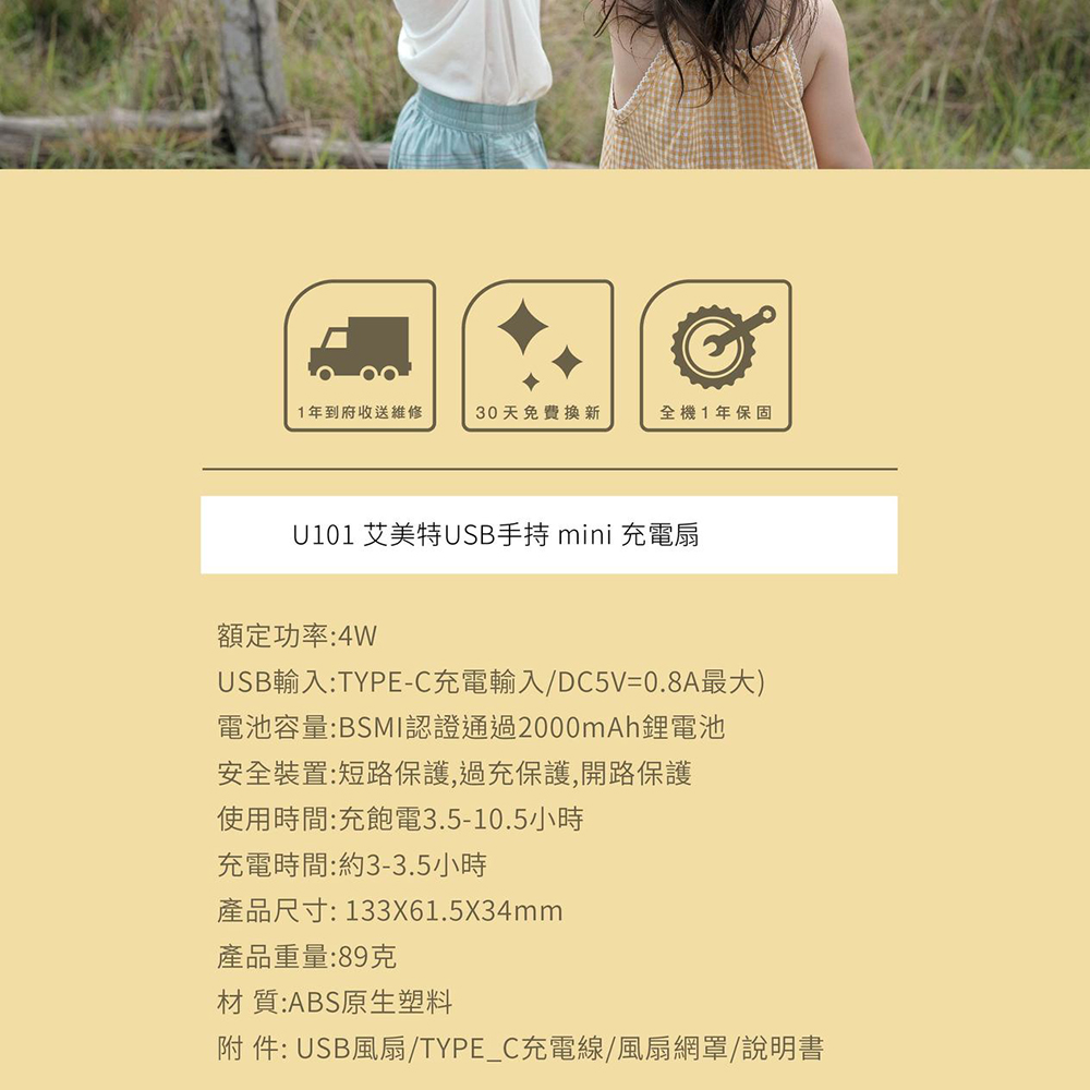 Airmate艾美特 USB手持 mini 充電扇 手持風扇 U101