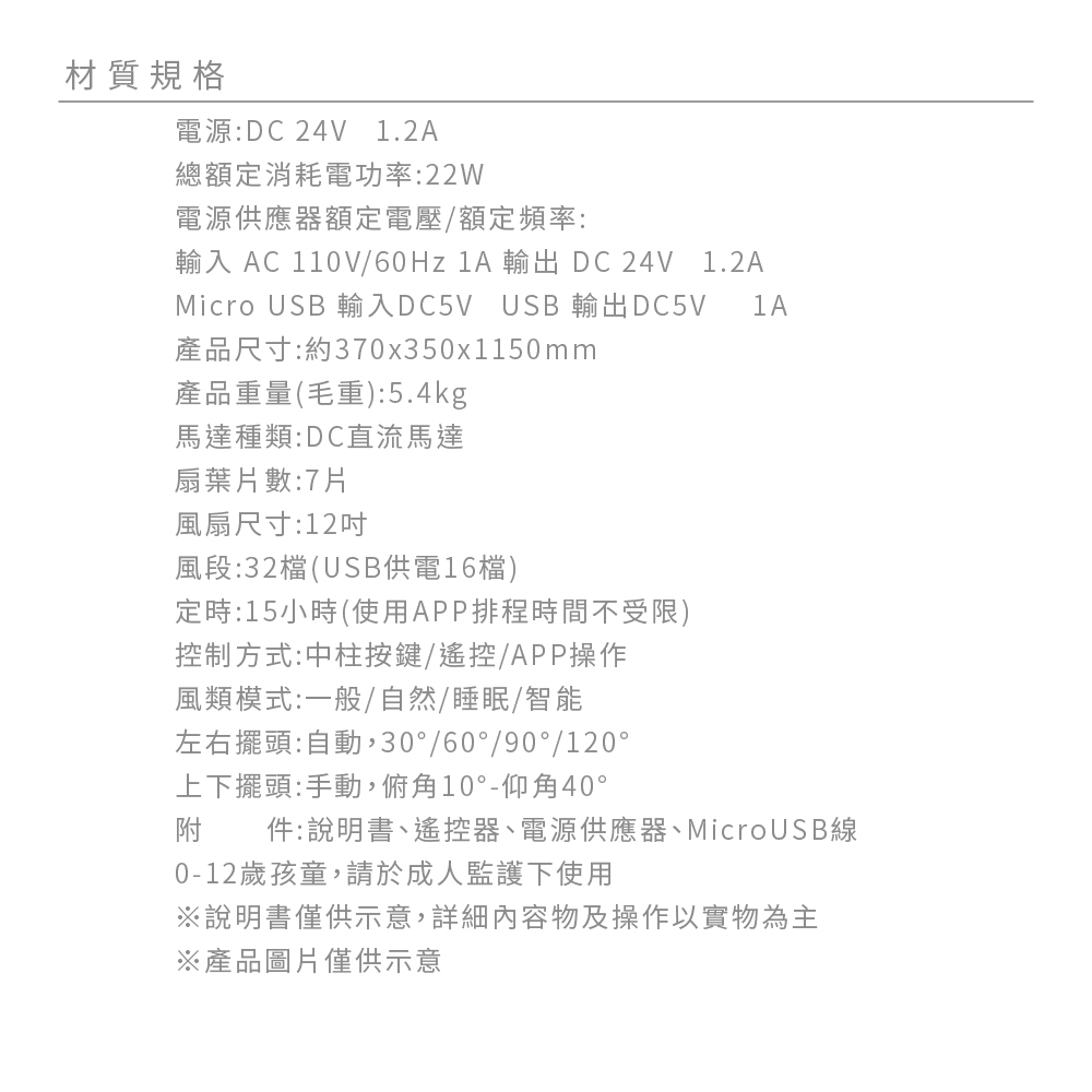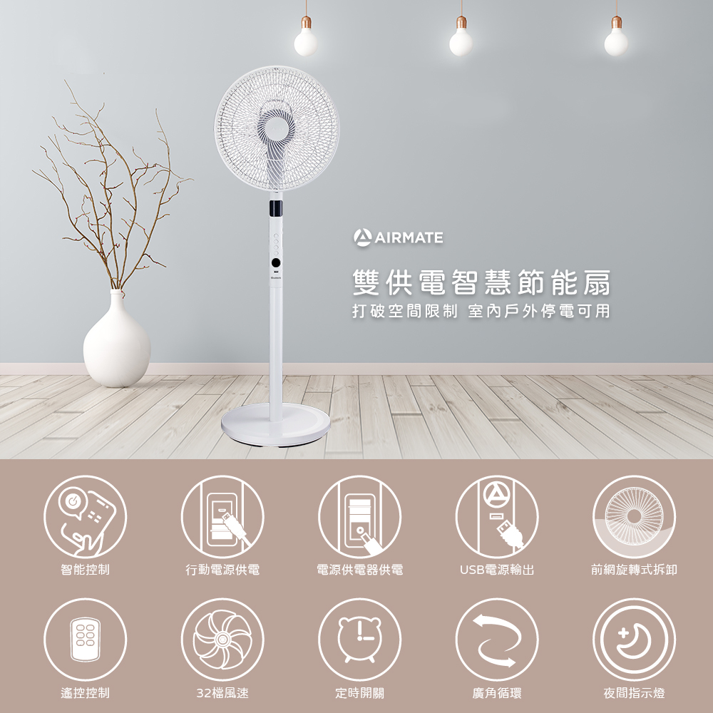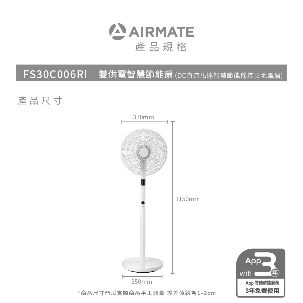 Airmate艾美特 12吋DC雙供電智慧節能扇 FS30C006RI