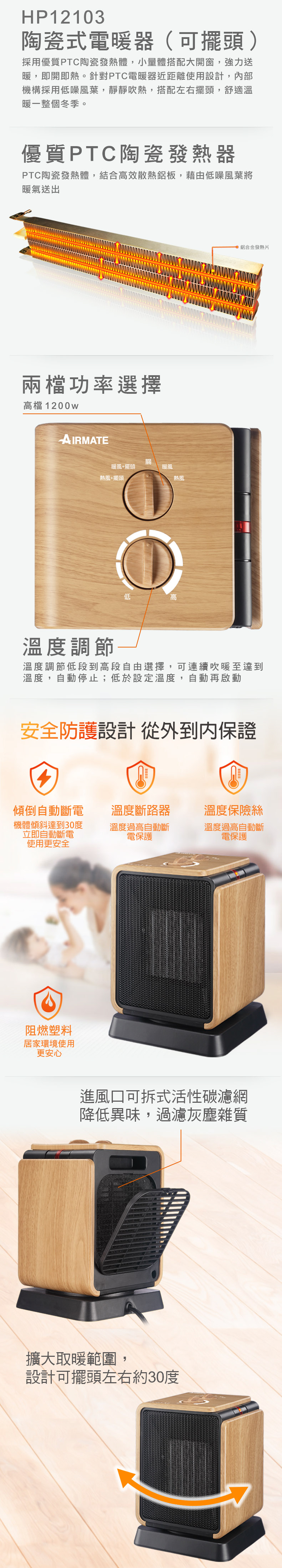 Airmate艾美特 木紋系擺頭陶瓷式電暖器 HP12103