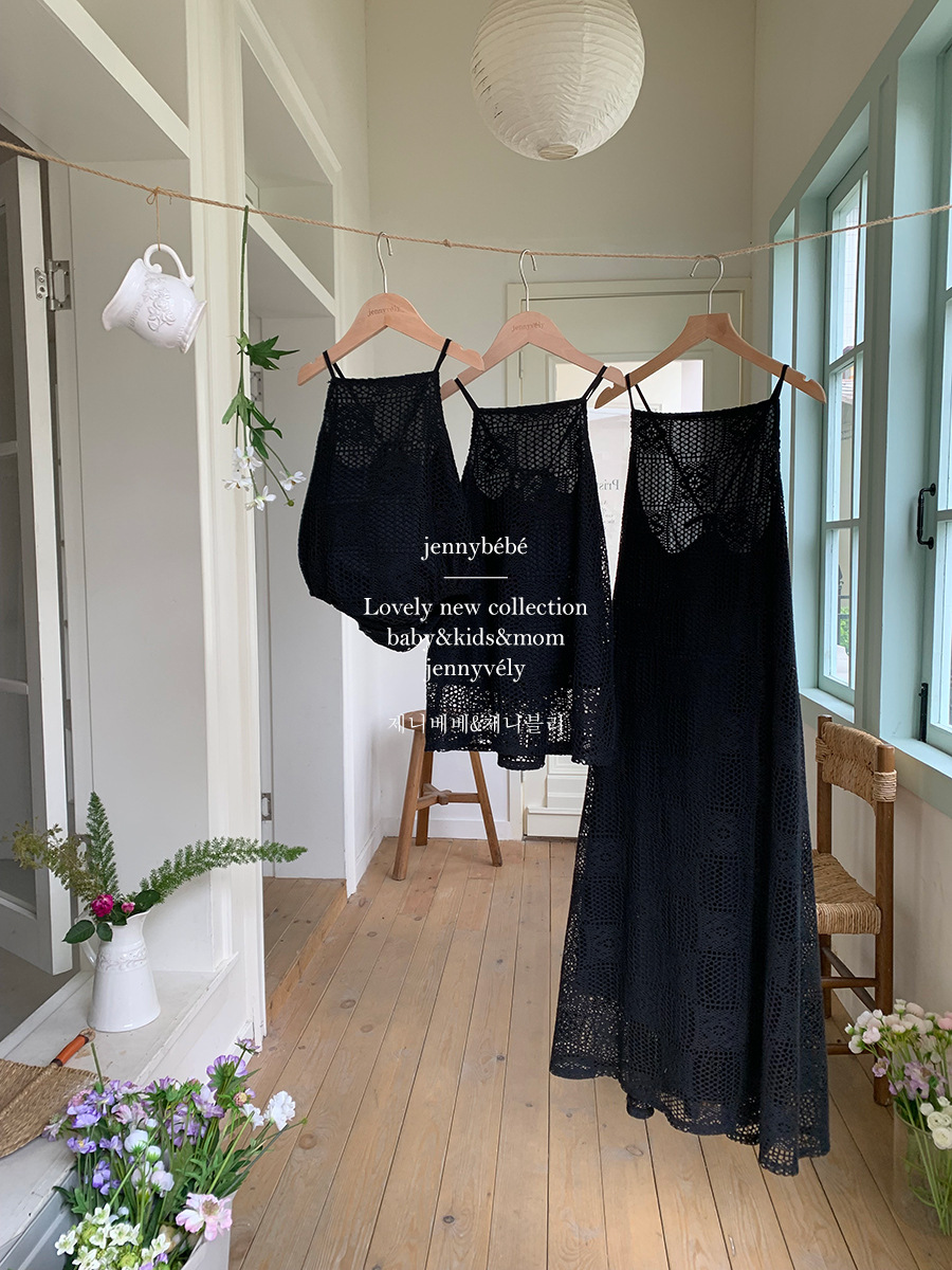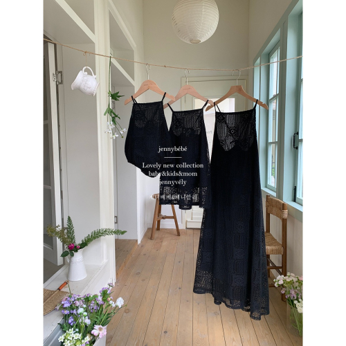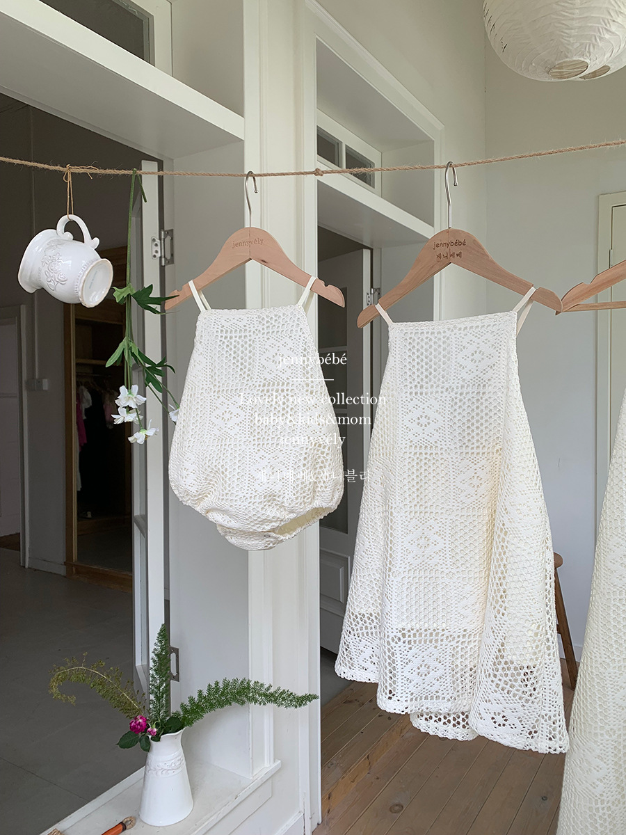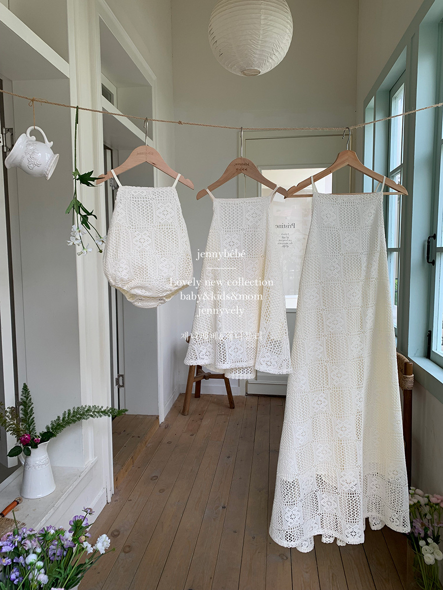 ins風母女親子装女童度假鉤花镂摟空連身裙婴嬰幼兒夏款吊帶爬服-預購