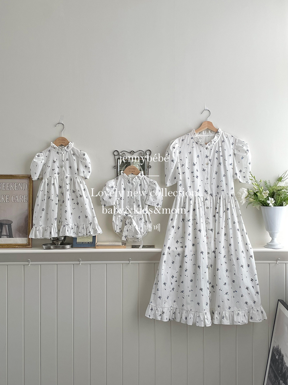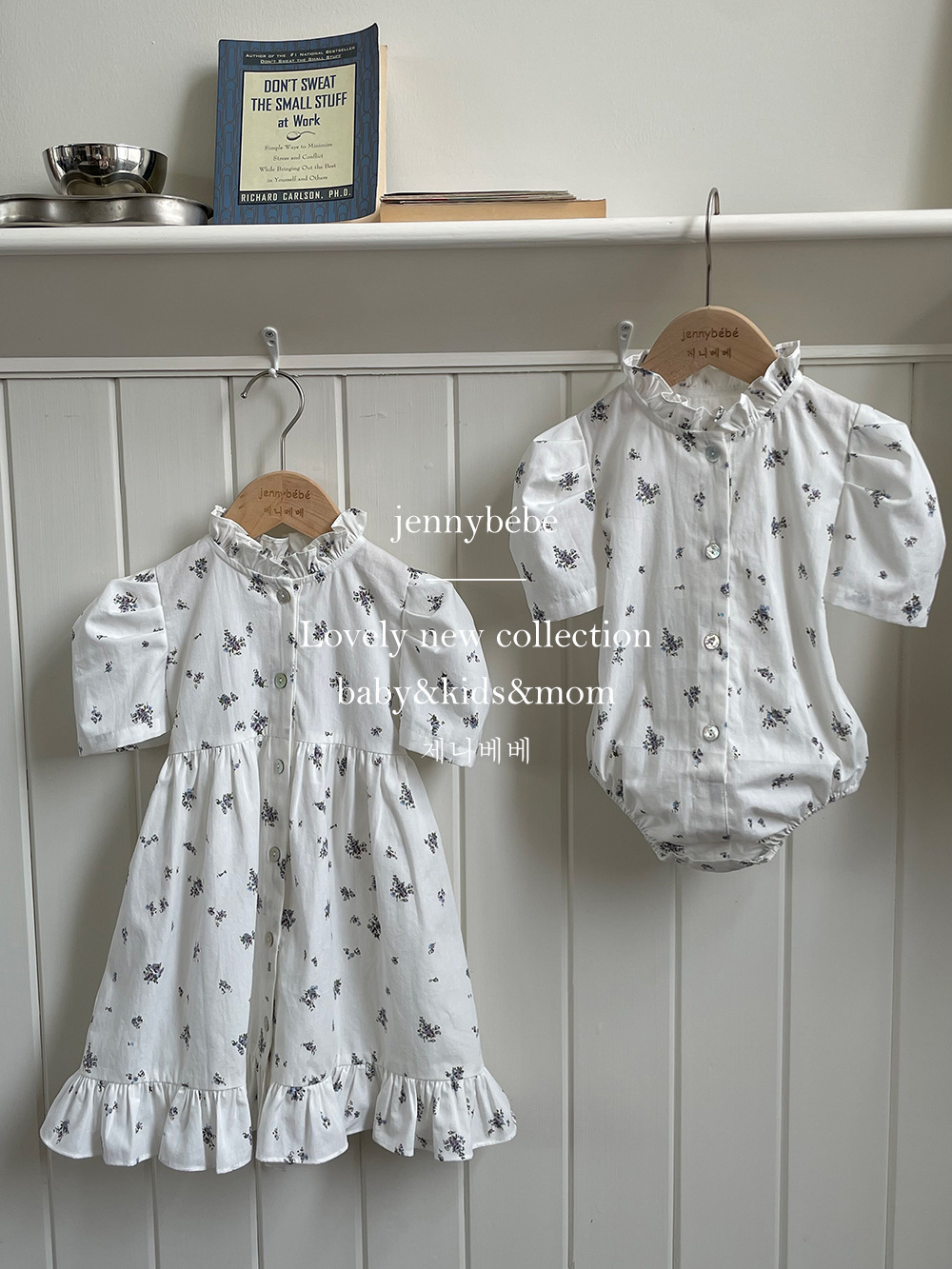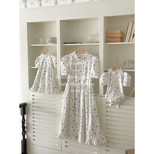 [CCbaby]ins韓版親子裝連衣身裙女寶寶碎花連体體爬服泡泡袖-預購