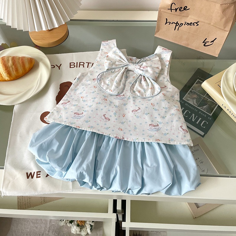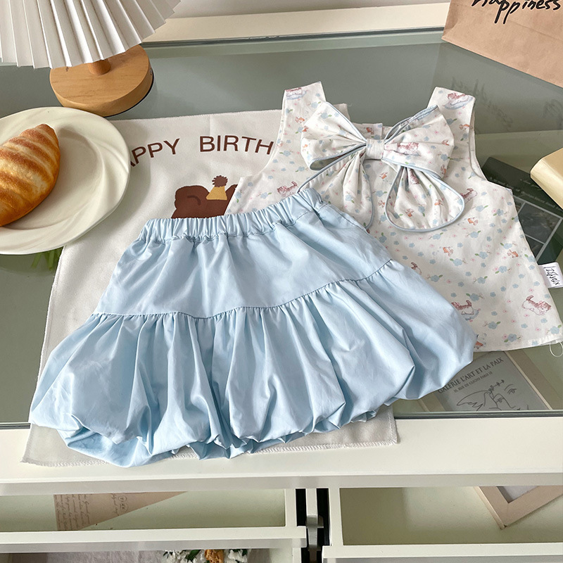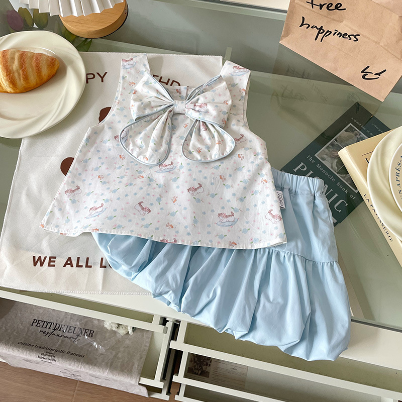 [CCbaby]韓版女童大蝴蝶結背心百搭花苞短褲套裝-預購