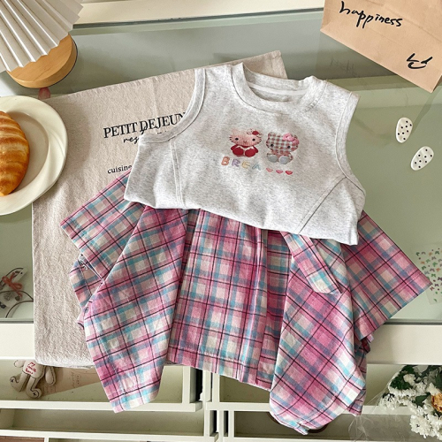 [CCbaby]女童帥氣kT背心不規則設計短裙套裝-預購