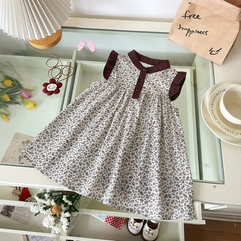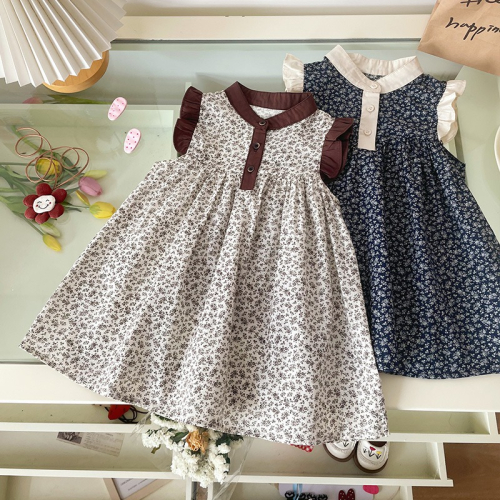 [CCbaby]韓版女童氣質花邊無袖小碎花連身裙-預購