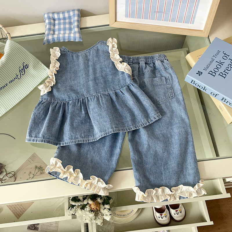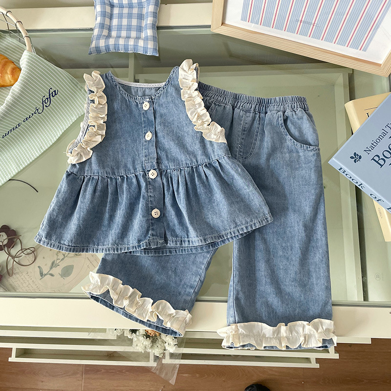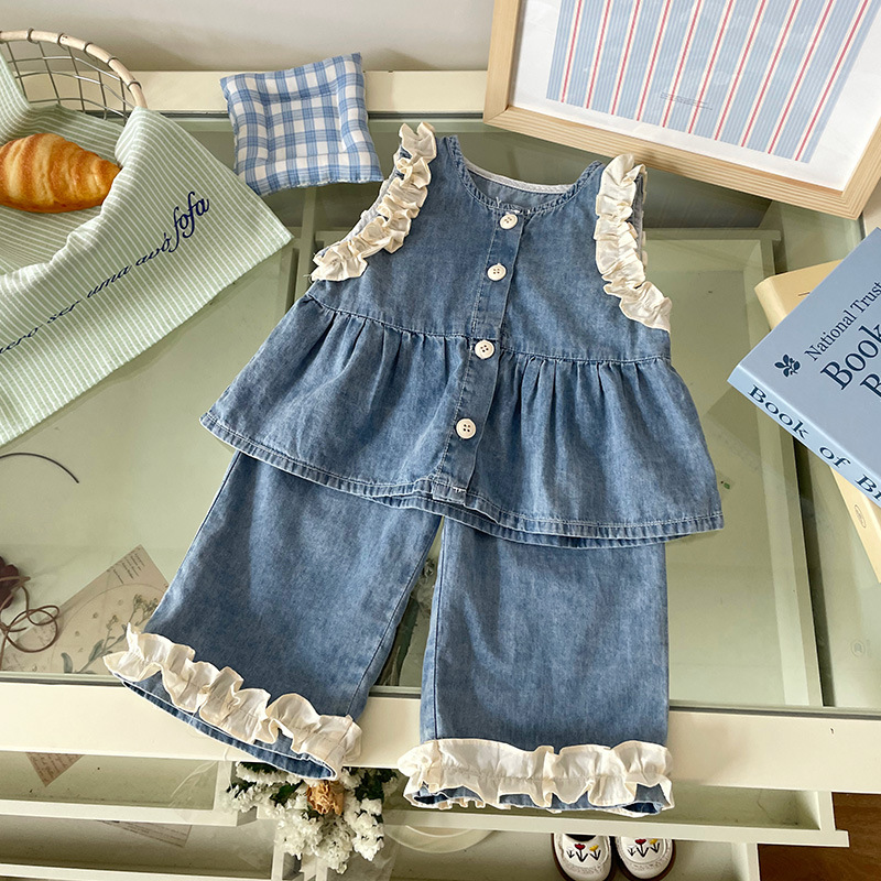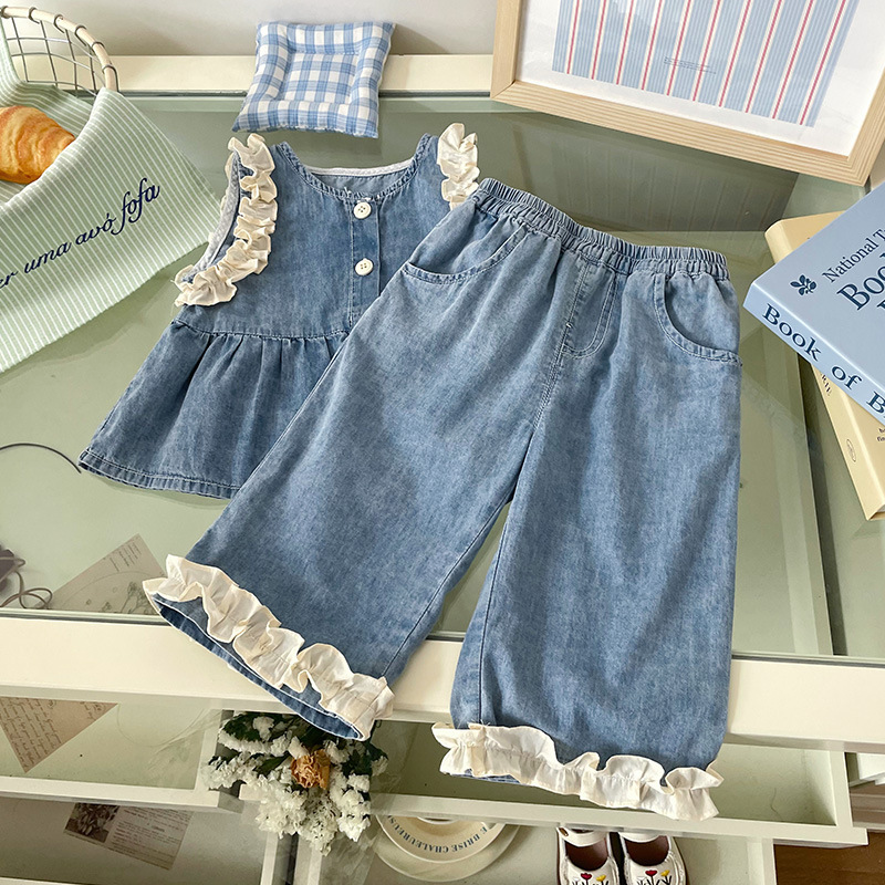 [CCbaby]韓版女童牛仔背心牛仔寬褲套組 預購