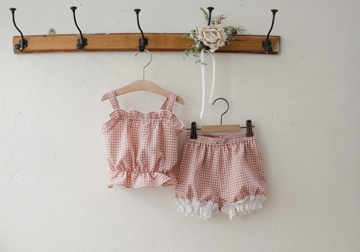 [CCbaby]正韓FLO 格子細肩上下套裝-預購
