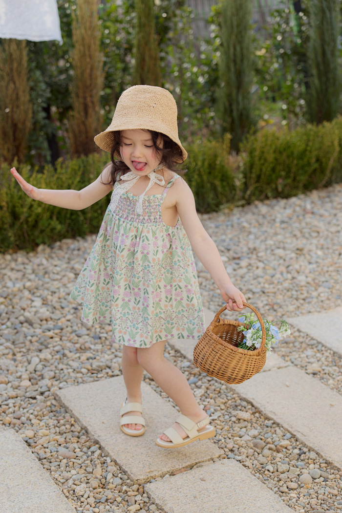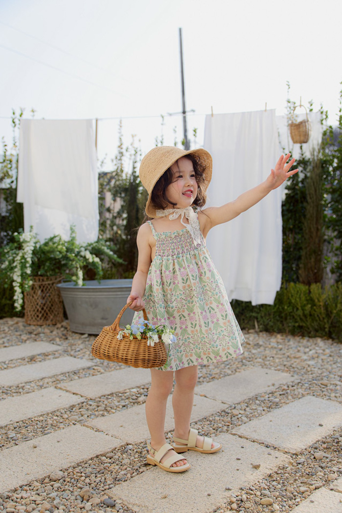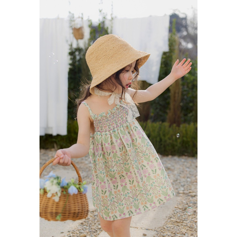 [CCbaby]正韓童裝 FLO 細肩草地綠花朵洋裝-預購