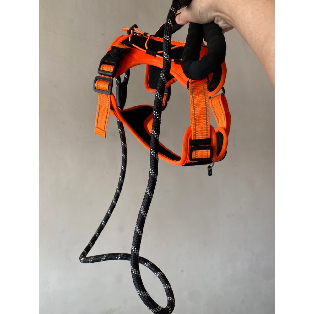 橘色背帶可調鬆緊、120公分黑色牽繩,使用一般背包插扣,穿拖很方便!😄