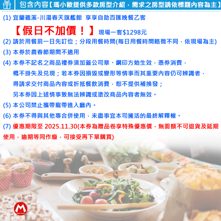 ※本賣場票券為專案採購,逾期得視票券面額抵用現場消費,本公司無法接受退換貨。