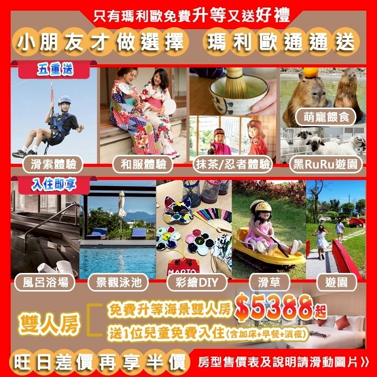*瑪利歐提供給消費者參考,飯店保有更改權利,如有異動依飯店公告為主!
