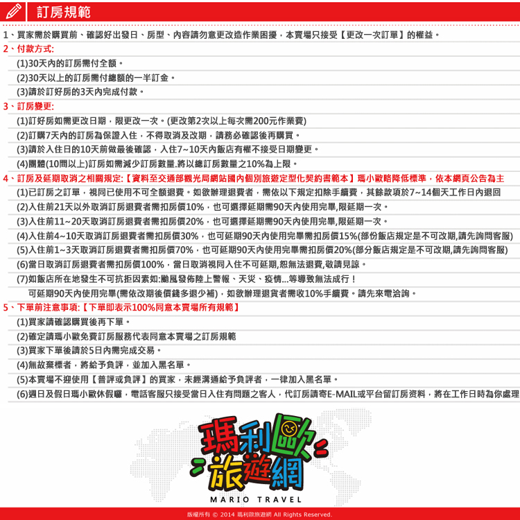 *瑪利歐提供給消費者參考,飯店保有更改權利,如有異動依飯店公告為主!