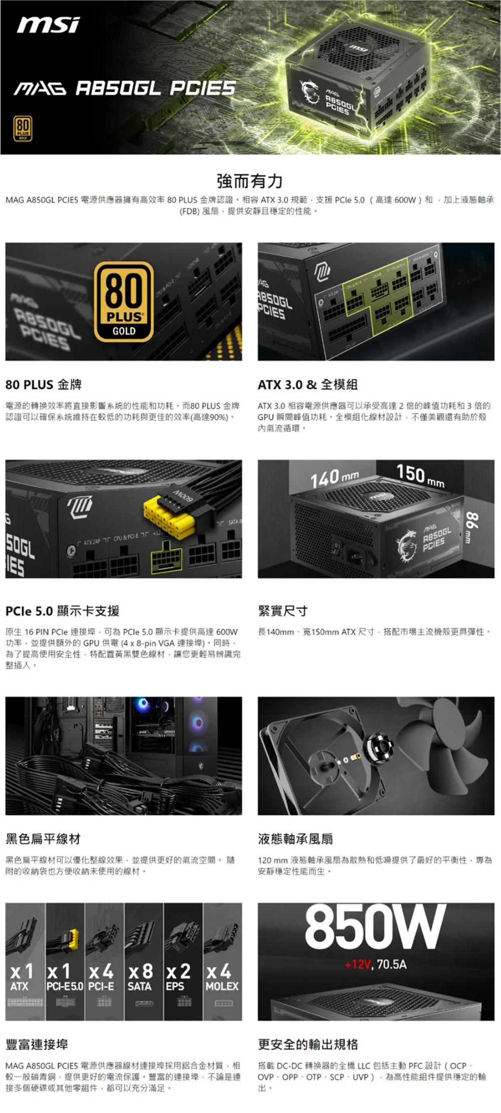相容 ATX 3.0,原生 PCIe 5.0 連接埠。