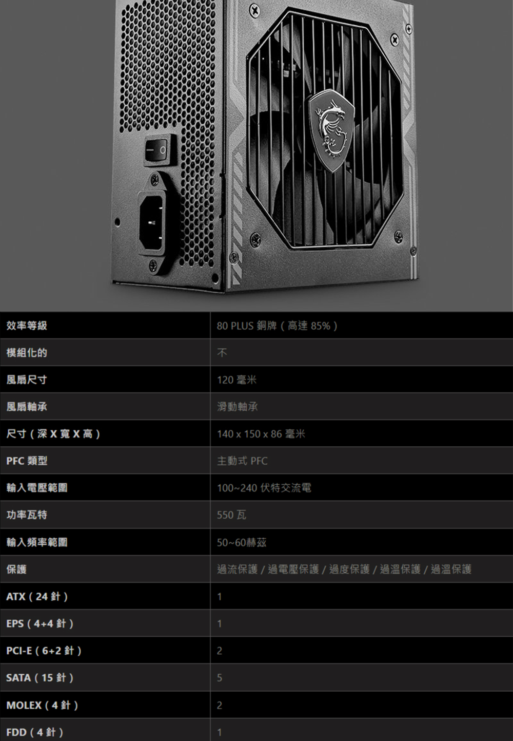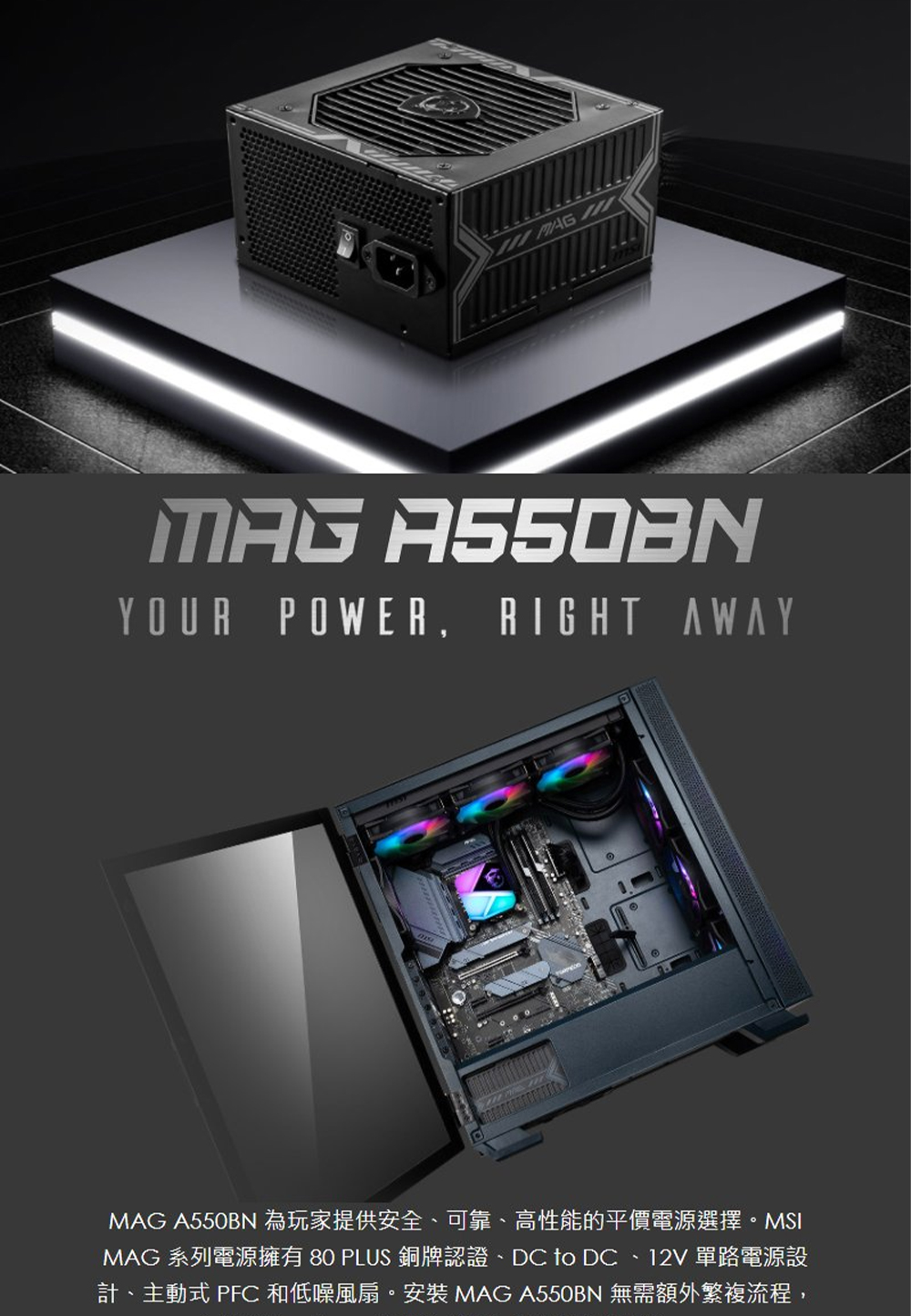 MSI 微星 MAG A550BN 550W 銅牌 電源供應器