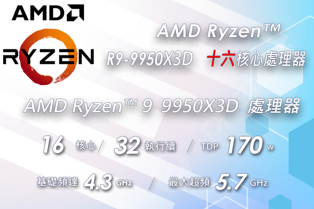 微星B650M GAMING WIFI主機板+AMD R9-9950X3D(含稅,附發票)