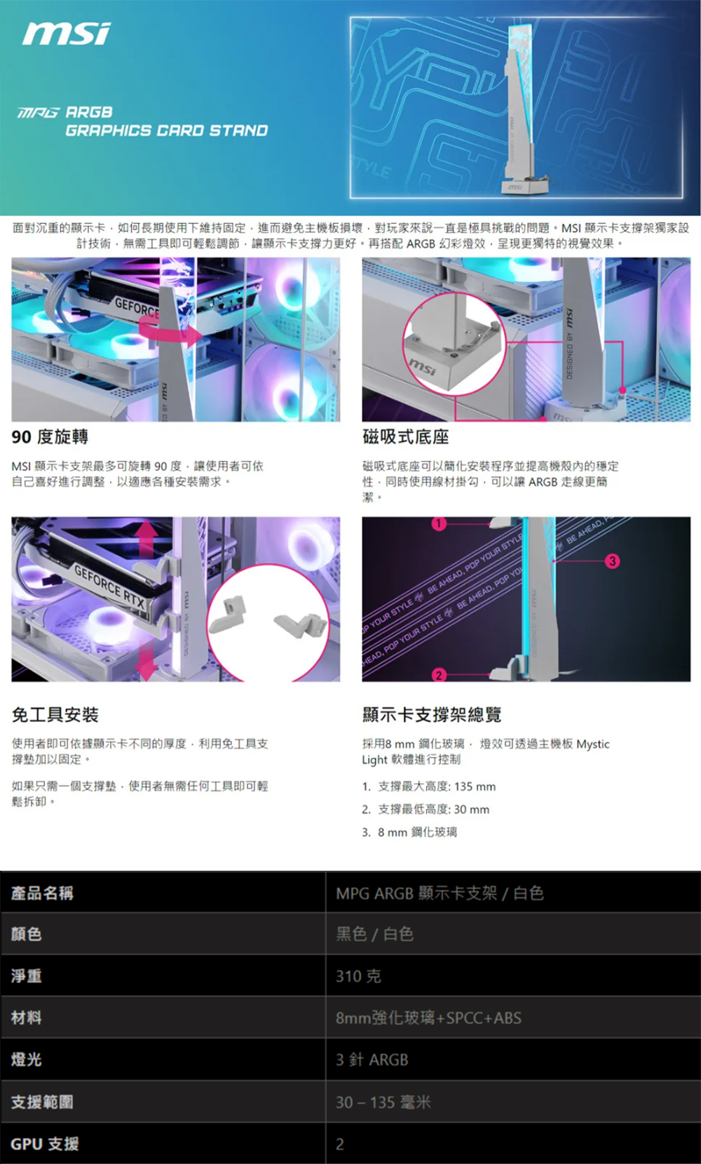 MSI 微星 MPG ARGB 顯示卡支撐架 / 白色