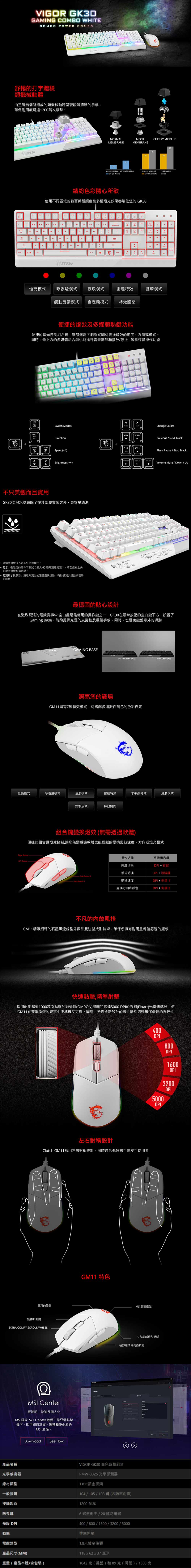 MSI 微星 VIGOR GK30 COMBO 電競鍵盤滑鼠組 (GK30+GM11) / WHITE
