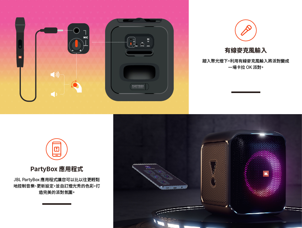 【買 JBL Partybox Encore Essential 就送JBL PB100有線麥克風以及專用提袋,數量有限,送完為止。】